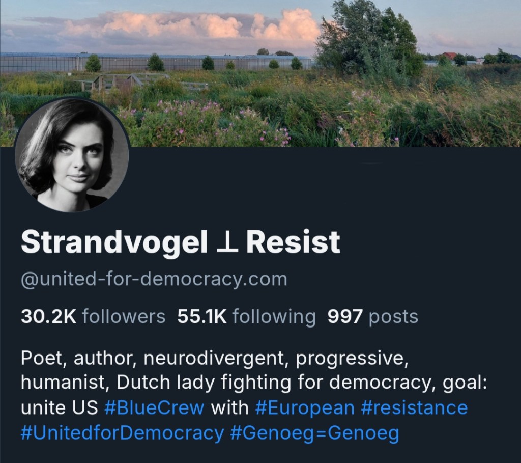 Through this other platform with different values, we have reconnected. We are prepared to fight for what we consider important. In the meantime, I got to know tens of thousands of Americans who want to fight for their democracy. With the help of starter packs, my number of followers grew explosively. In order to have my account, Strandvogel, verified, I needed a website. That is why I decided to set up this website. As a base from where I can work towards my goal of bringing together as many people as possible from all over the world so that together we can effectively resist.